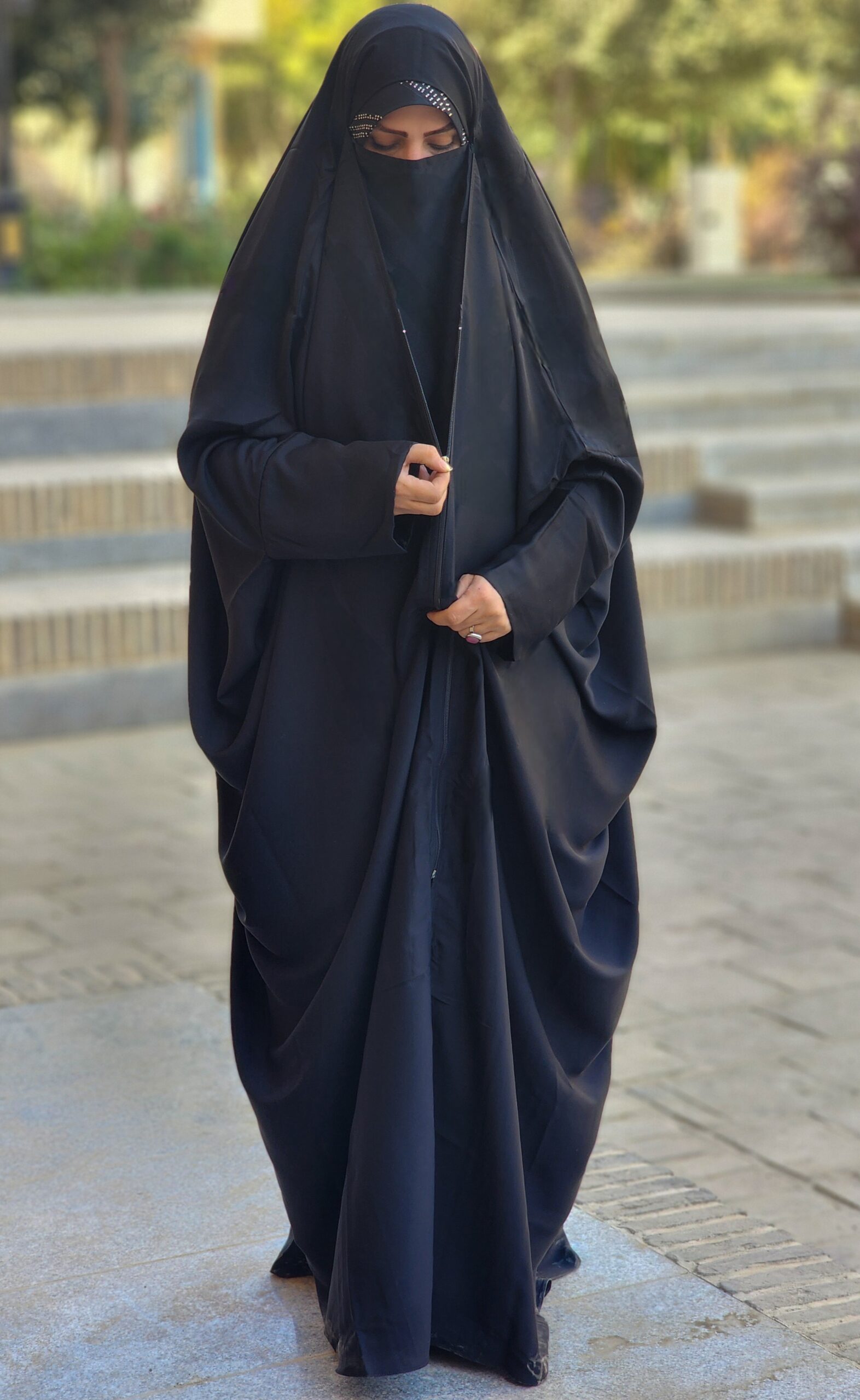 با وجود نقاب چندمنظوره و زیپ مخفی، این چادر حجاب کاملی ایجاد میکند و نیاز به پوشیدن روسری یا مانتو در زیر آن نیست.
